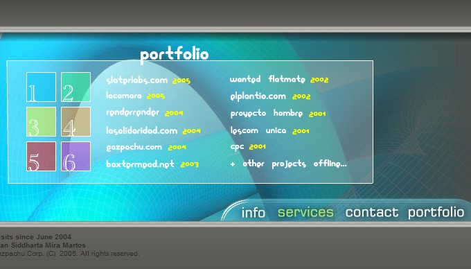 GAZ New Media Design (aka gazpachu.com) was my first identity as a freelance web designer. It was created as a very naive and unpretentious brand. My target was to learn as I go through the process of building websites. After a few years, I decided to get rid of it (on a professional level) and convert it into a personal blog (v5), which after a few years I also decided to kill it in favor of joanmira.com.